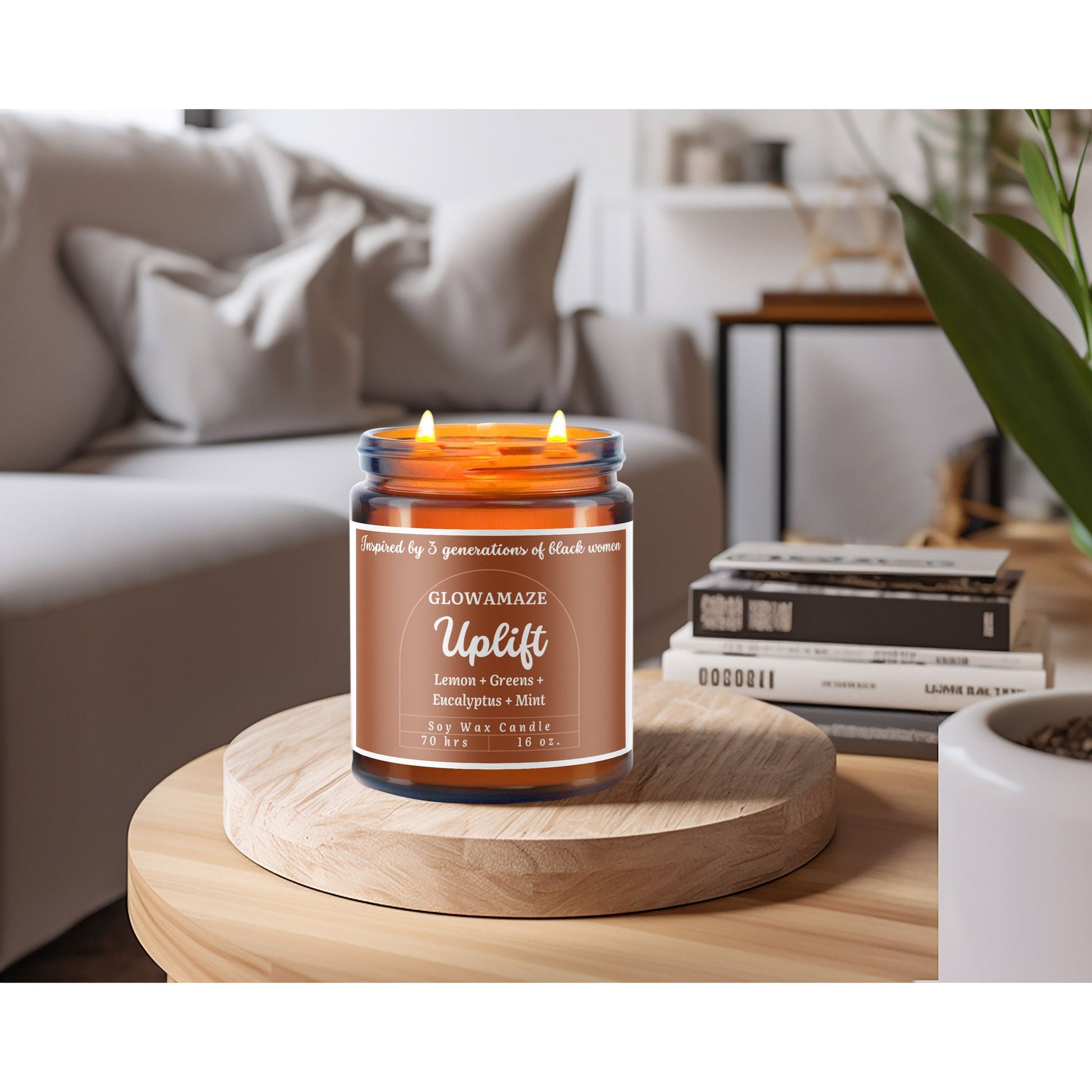 Refresh and invigorate your senses with the GlowAmaze UPLIFT Soy Candle. This bright and energetic fragrance combines zesty lemon with the calming aroma of freshly picked mint. It's the perfect way to boost your mood and infuse your space with positivity. Light it up and let its uplifting scent transform your environment into a haven of fresh and vibrant energy.